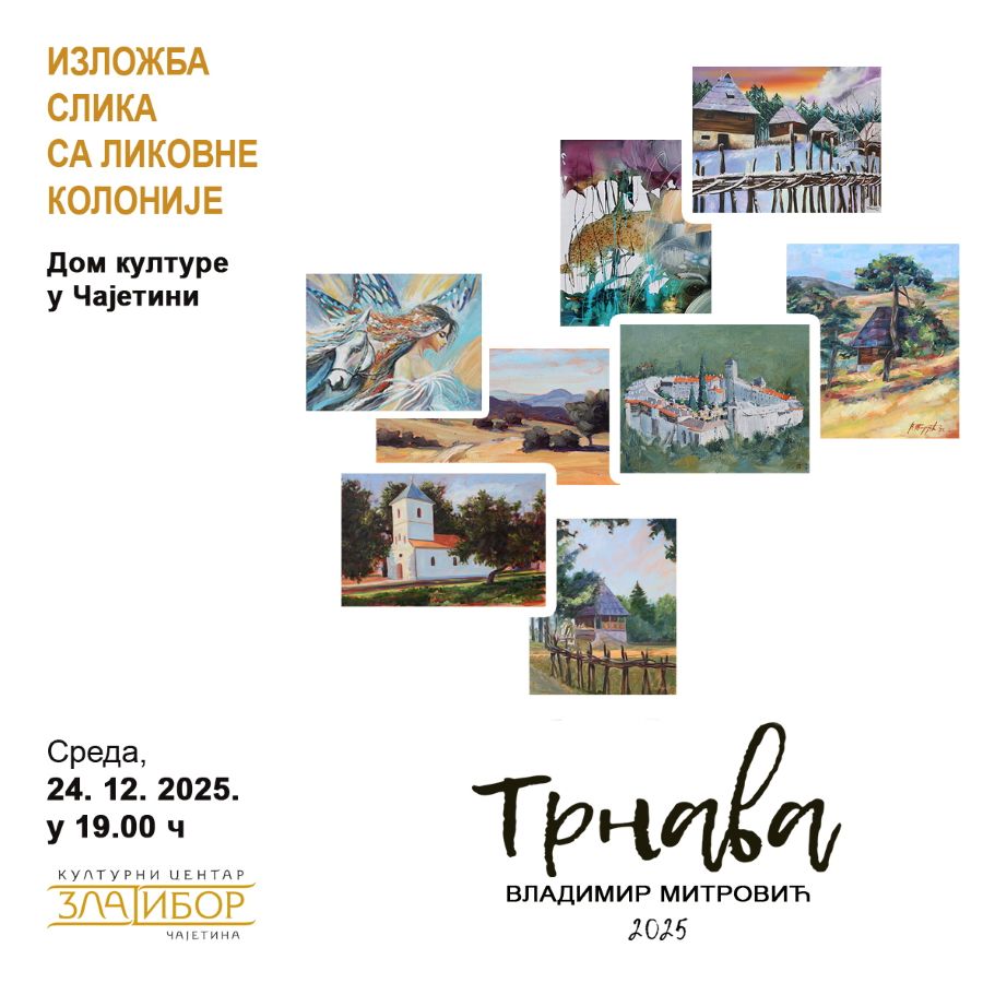 У среду, 24.12.2025. године, у Дому културе у Чајетини биће отворена изложба слика са 33. Ликовне колоније „Трнава -Владимир Митровић”.