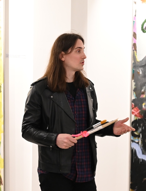 Уметник је говорио о одабиру апстрактног сликарства, након година изучавања фигурације и анатомије. Можда најмање заступљено међу овдашњим сликарима и најтеже за разумевање, оно уметнику даје слободу стварања и чини га медијумом међу световима и генерацијама. На сликама је представљено одрастање у Ужицу, под утицајем бетона, сливника и каскада оличеним у брутализму.