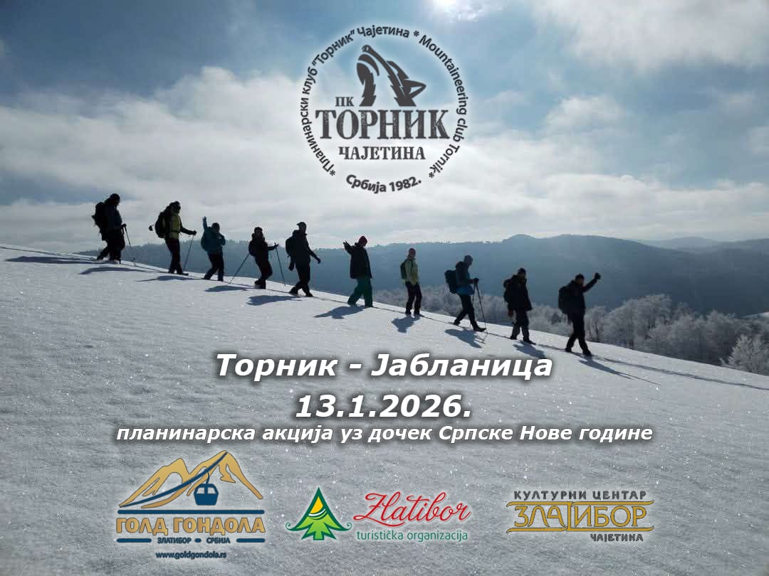 У уторак, 13. јануара, дочеку ће претходити планинарска акција, у организацији ПК Торник. Полазак је у 12 часова са почетне станице Голд гондоле Златибор, након чега учесници гондолом стижу на врх Торника (1496 мнв). Стаза води преко Лиске до центра Јабланице, уз прелепе зимске пределе. Пријава и додатне информације код водича, Марка Џамбасовића (МБ778), на број 064 156 5578.