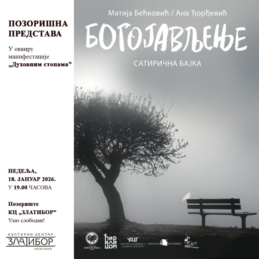 У оквиру манифестације „Духовним стопама”, у недељу, 18. јануара, у 19 часова, биће одиграна представа „Богојављање” за коју је текст и режију радила Ана Ђорђевић, а играју Светозар Цветковић, Милован Филиповић и Небојша Миловановић.